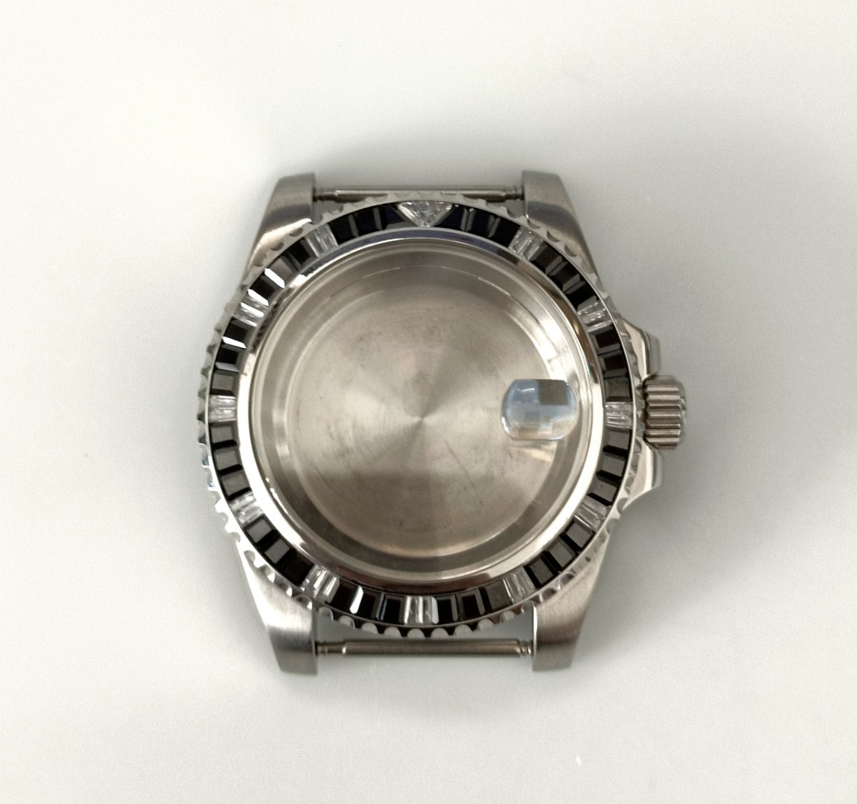 - 腕時計 社外品 ケース ブラック ダイヤモンドベゼル ブルー小窓 【対応ムーブメント】SEIKO 7S26/7S36/NH35/NH36/4R36 セイコー