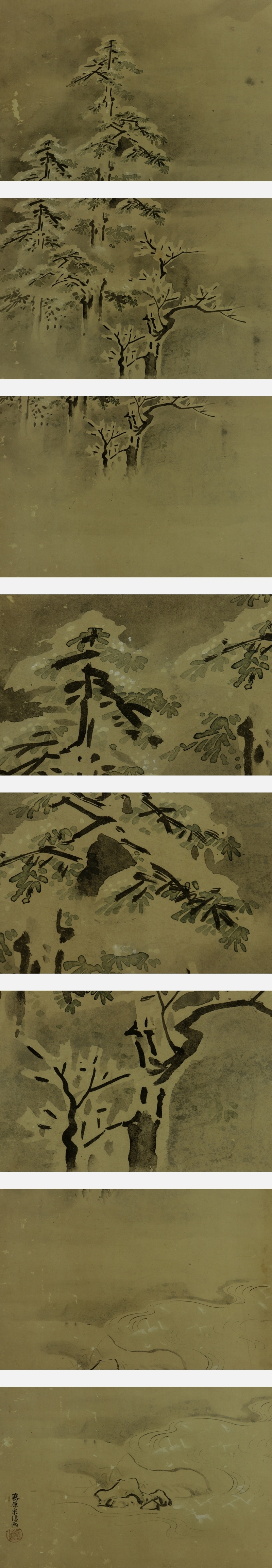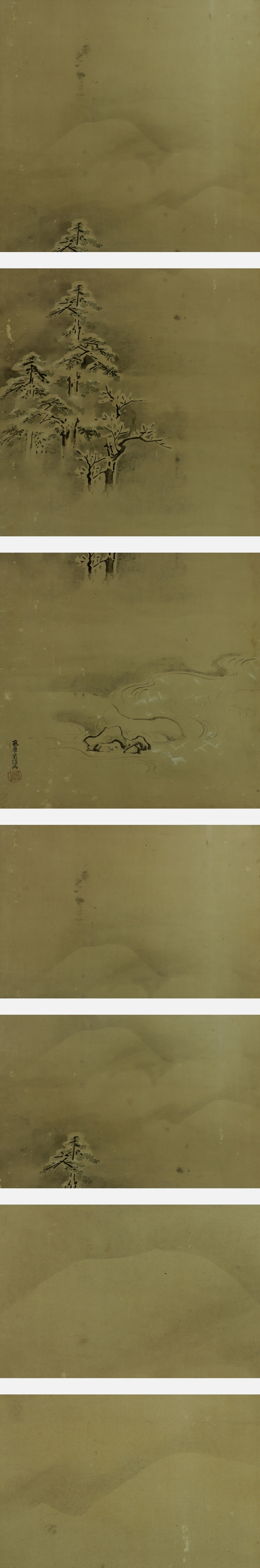 - 【真作】狩野派 藤原宗信【雪景山水】◆紙本◆合箱◆掛軸 t08030