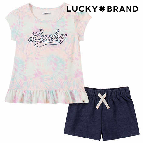 - 新品 110 ★ コストコ ラッキーブランド 上下 セット 半袖 Tシャツ ショートパンツ 4T パープル デニム セットアップ LUCKY BRAND アメカジ