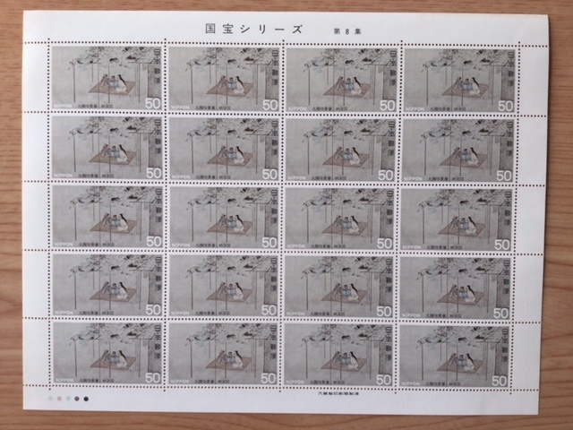 > 国宝シリーズ 第2次 第8集 納涼図 50円 1シート(20面) 切手 未使用 1978年