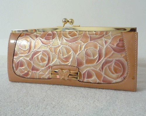 - アナスイ ANNASUI エナメル ベージュ系 薔薇柄型押し ベージュ がま口 長財布 ロングウォレット レディース