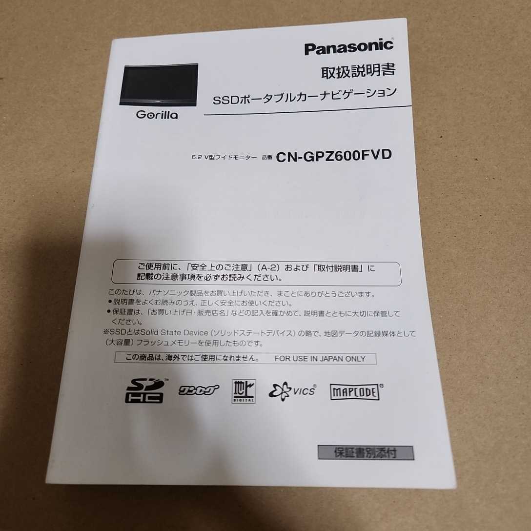 > パナソニック Panasonic ゴリラ ポータブルナビ CN-GPZ600FVD用の取説 取扱説明書 取扱書 マニュアル