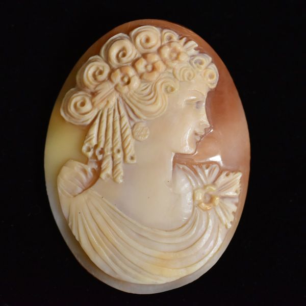- ヴィンテージ 手彫り 春の女神フローラ 大型シェルカメオルース/裸石 本物保証