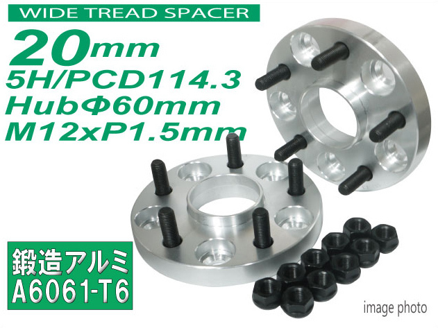 > ハブ一体型 トヨタ車用 5H/PCD114.3 20mm厚 ハブ径60φ/ アルミ ワイトレ エスティマ、プリウスアルファ等
