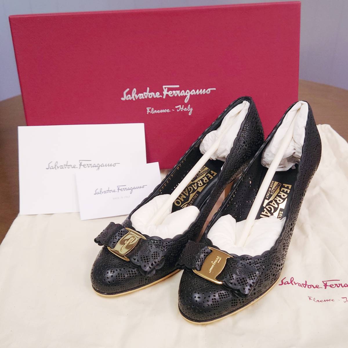 - 新品★Salvatore Ferragamo◆パンプス 5ハーフ(約23cm) CARLA LC レース 黒 リボン シューズ サルヴァトーレ・フェラガモ