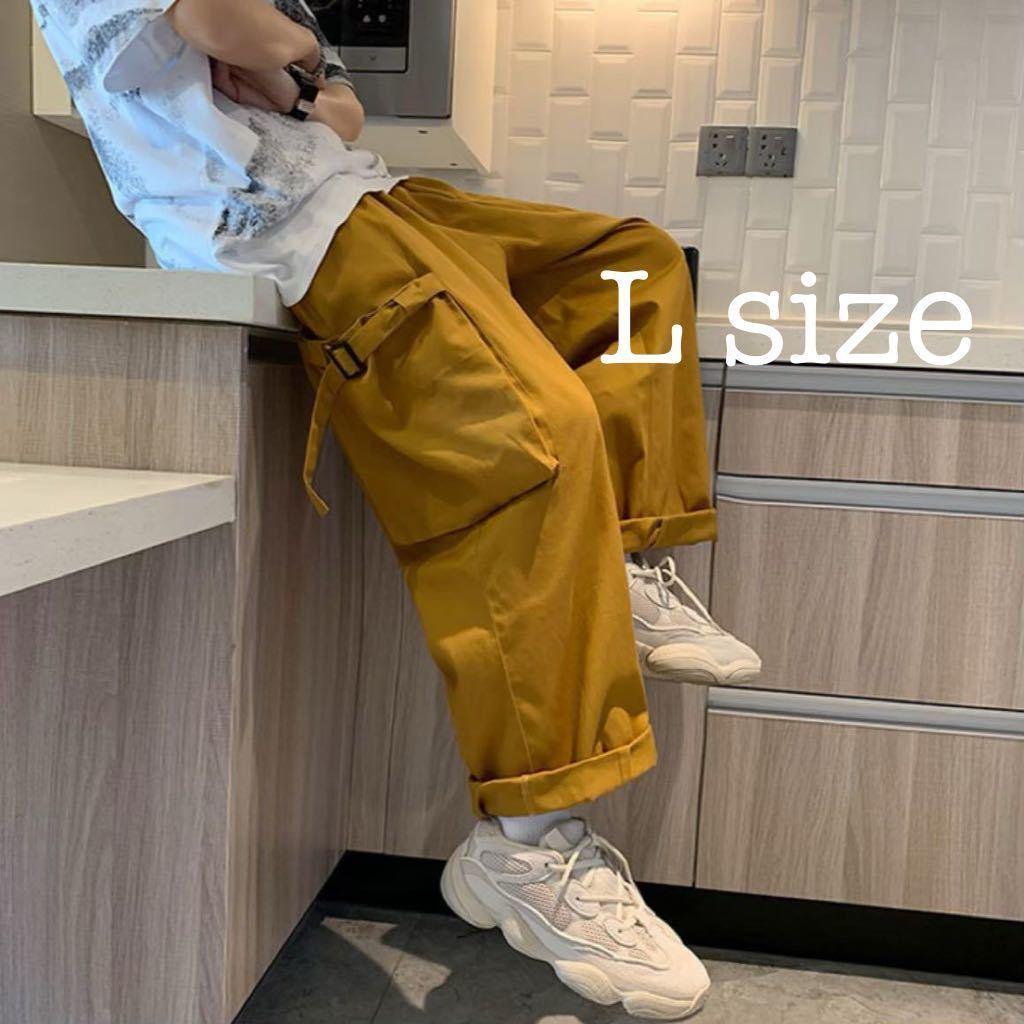 - ボトムス ワイドパンツ カーゴパンツ ワークパンツ ルーズパンツ ユニセックス 男女兼用 イエロー 黄色 L