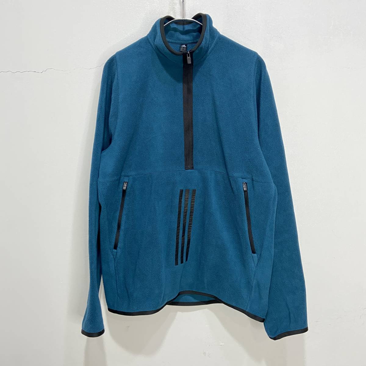 - 送料無料☆adidas☆アディダス☆ハーフジップフリースプルオーバー☆パフォーマンスロゴ☆スリーストライプ☆ブルー系☆L☆L23M