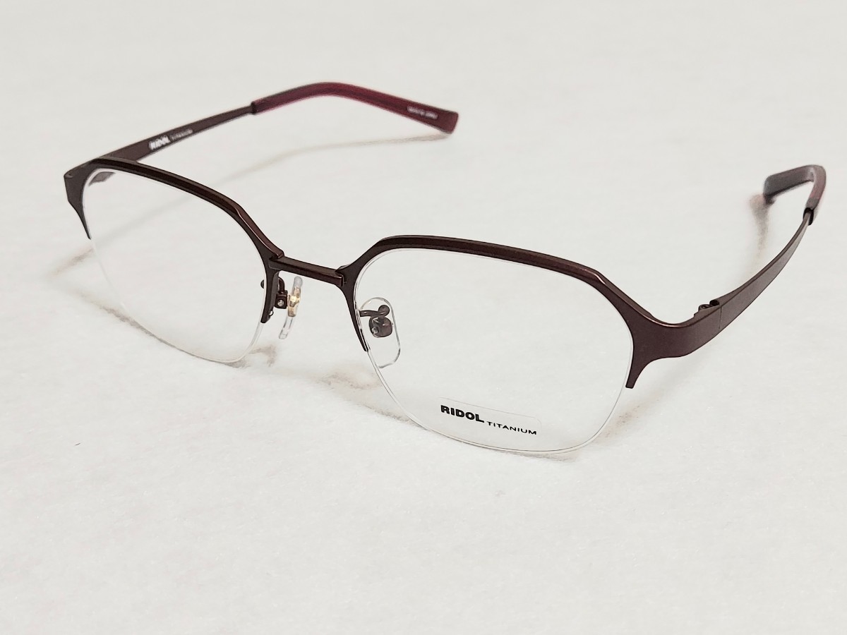 > 新品 RIDOL TITANIUM リードルチタニウム 日本製 ブランド メガネ めがね ハーフリム チタン 軽い オシャレ 赤 レッド