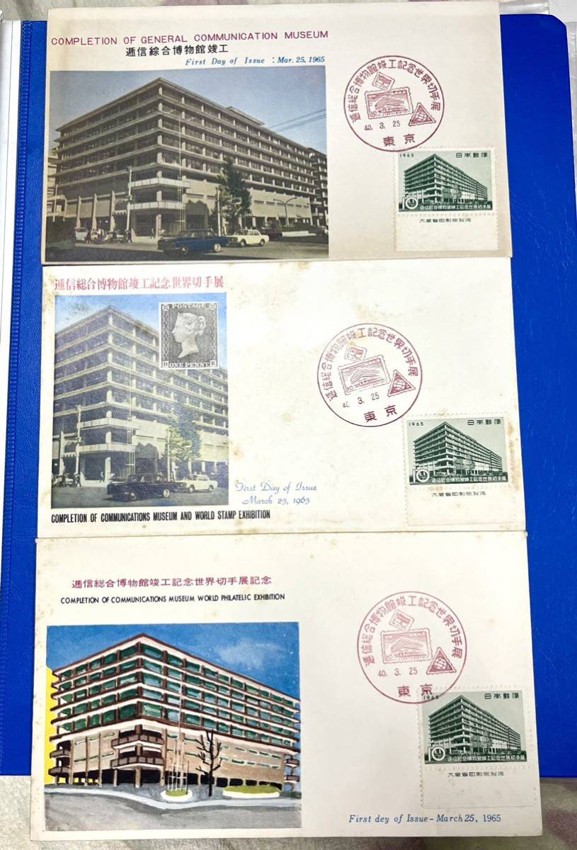 > 逓信総合博物館竣工記念世界切手展記念切手 3枚セット 1965年昭和40年初日カバーFirst day Cover 東京印 切手文化部 【送料84円】 k