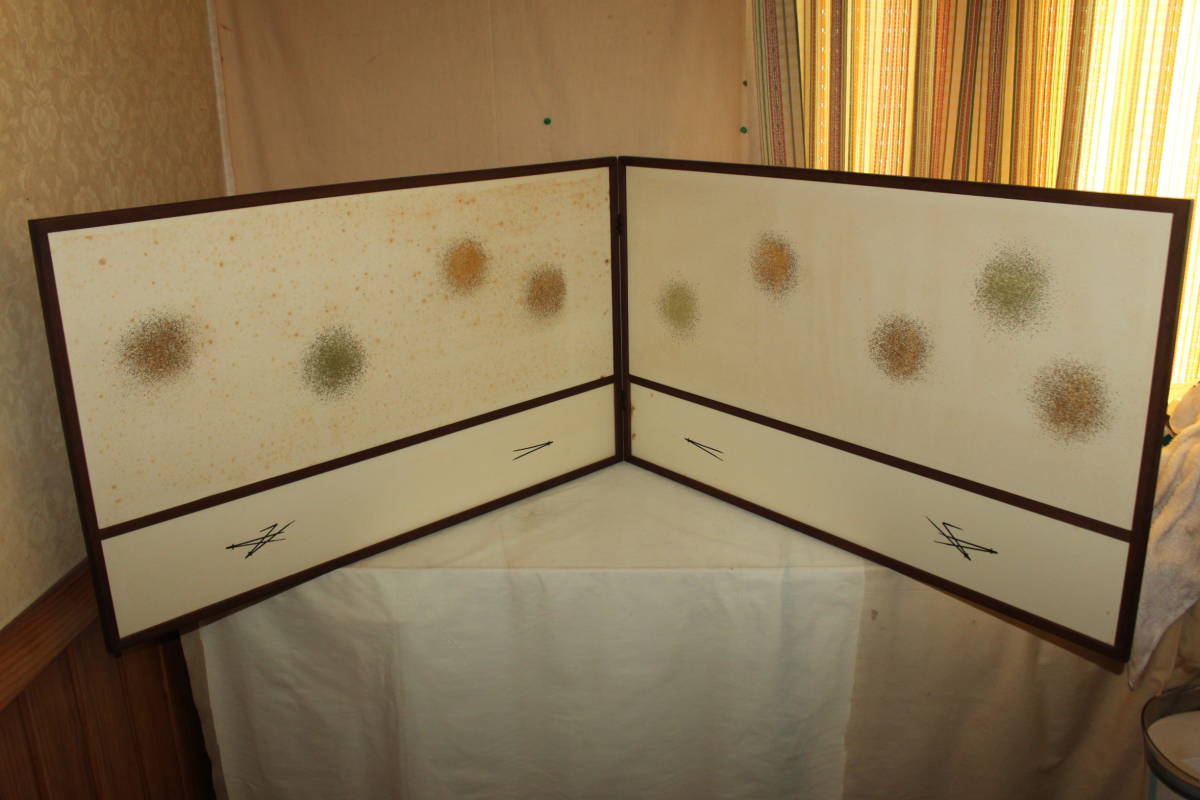 - ◯風炉先屏風 蓬春堂 京間用 十景炉屏 玉砂子 桑枠 利休梅 結界 仕切り 茶道具