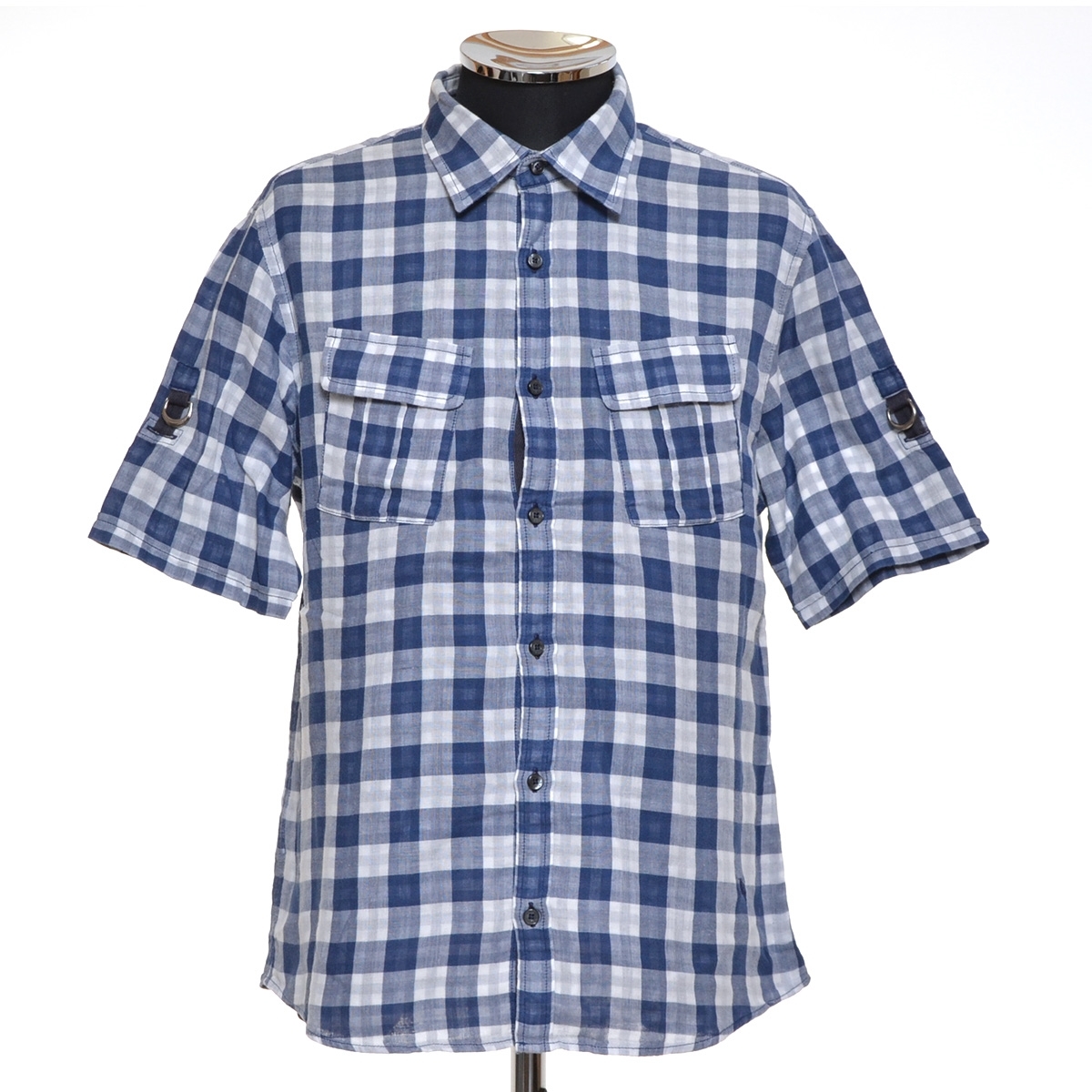 - 〇492551 BURBERRY BLACK LABEL バーバリーブラックレーベル ○半袖 ガーゼシャツ ポニー刺繍 トップス サイズ2 メンズ ブルー チェック