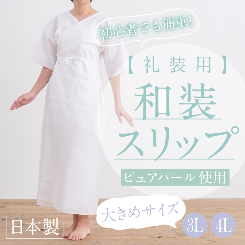 - 【針子】 【礼装用 和装スリップ 大きめ】【3L 4L】肌着 ワンピース 日本製 綿 ポリエステル 結婚式 留袖 小紋 着物 初心者 着付 和装