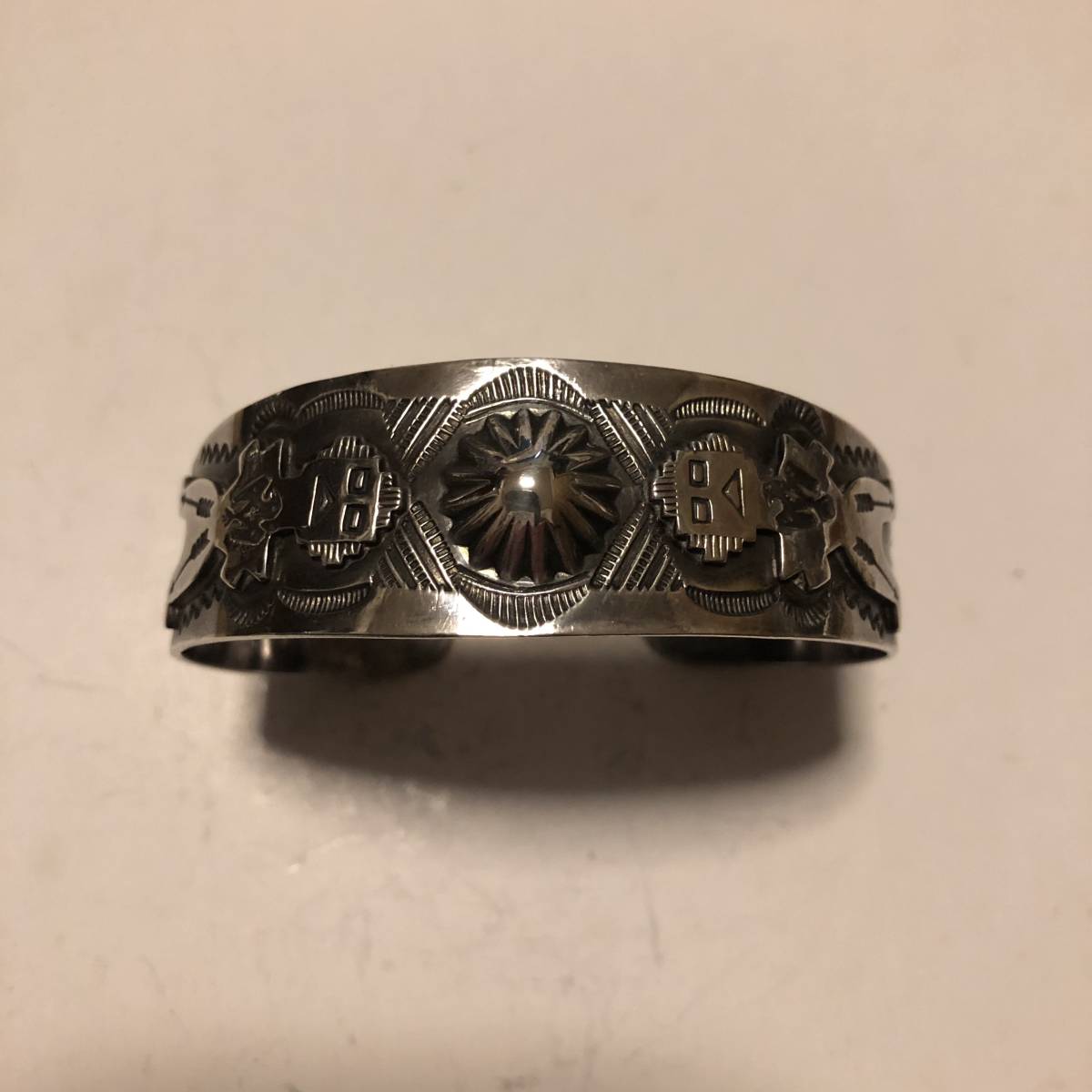 - 希少 ナバホ ビンテージ サンダーバード & アロー デザイン スタンプ シルバー バングル ナバホ族 インディアン ジュエリー NAVAJO 60S 50S