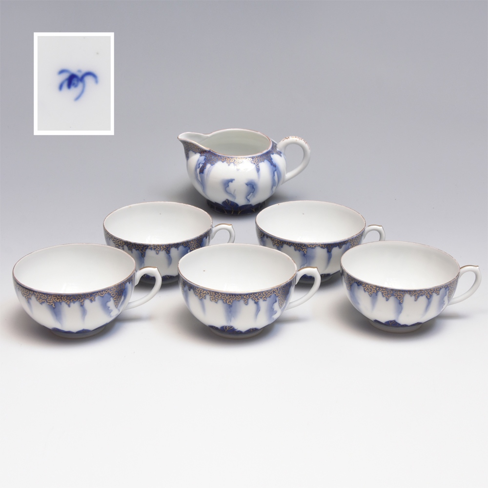 > 大正期~昭和初期頃 オールド深川 金彩色絵牡丹文 カップ6客 クリーマー セット オールド香蘭社 陶磁器 有田焼 宮内省御用達 y2397