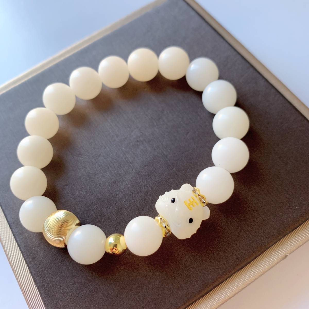 - ◇菩提樹の根◇白玉菩提◇虎形1粒◇ブレスレット◇数珠◇念珠◇巾着袋つき◇プレゼントにも027B11111
