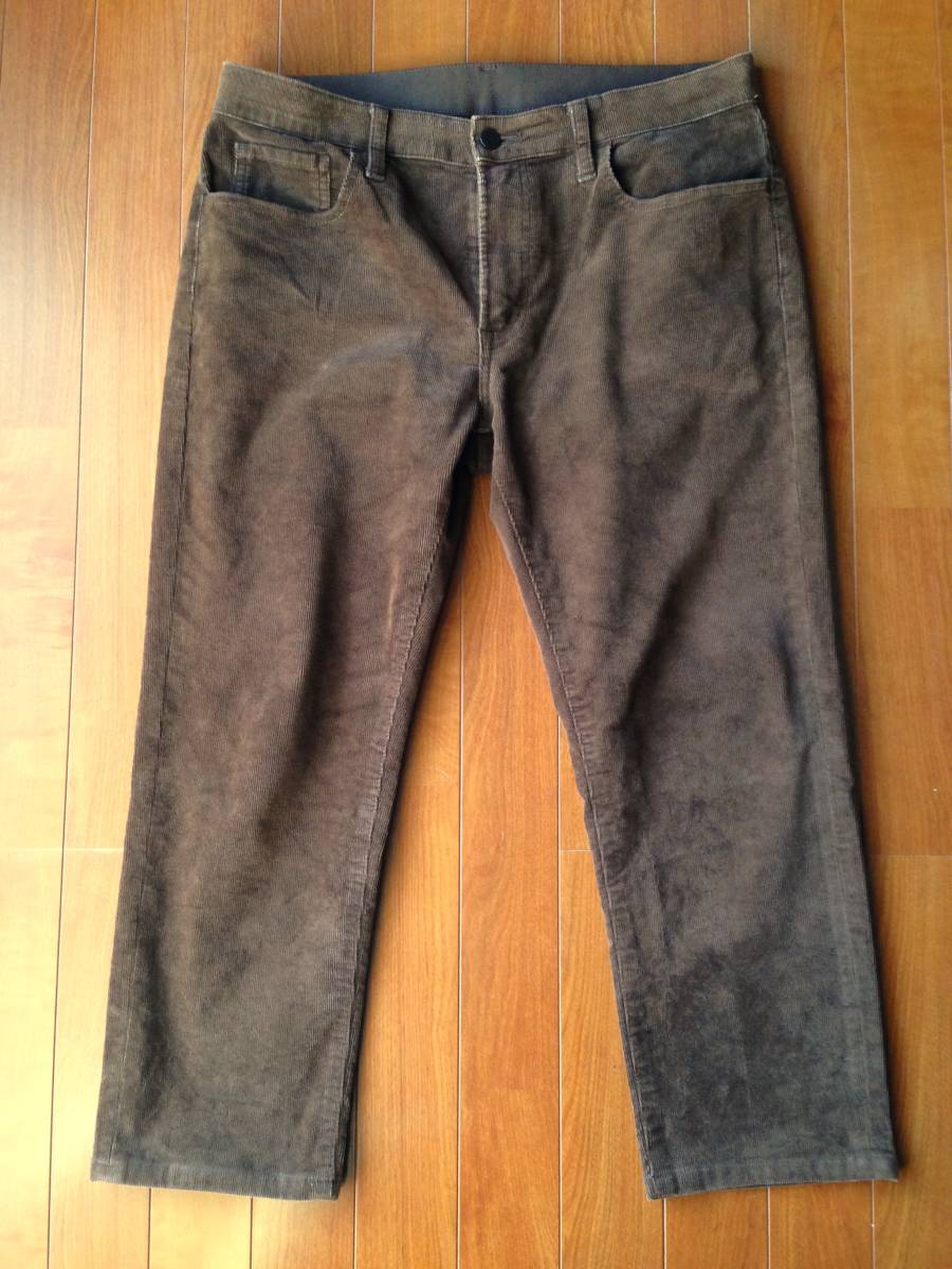 > ユニクロ UNIQLO 茶色 brown ブラウン こげ茶 コーデュロイ パンツsize:L アンクル丈 スキニー テーパード ウルトラストレッチ スリム 古着