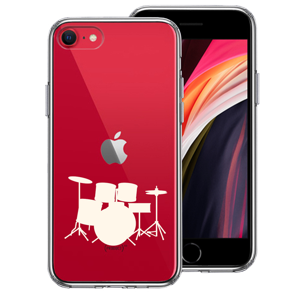 > iPhoneSE ケース 第3世代 第2世代 クリア ドラム ホワイト スマホケース 側面ソフト 背面ハード ハイブリッド