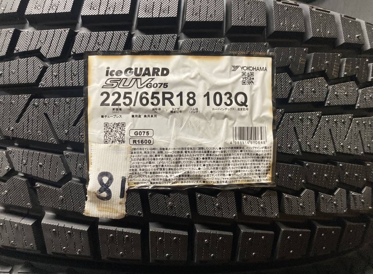 - 【ⅩⅥ】格安 ヨコハマタイヤ スタッドレス ice GUAGD SUVG075 225/65R18 2018年製造 4本セット