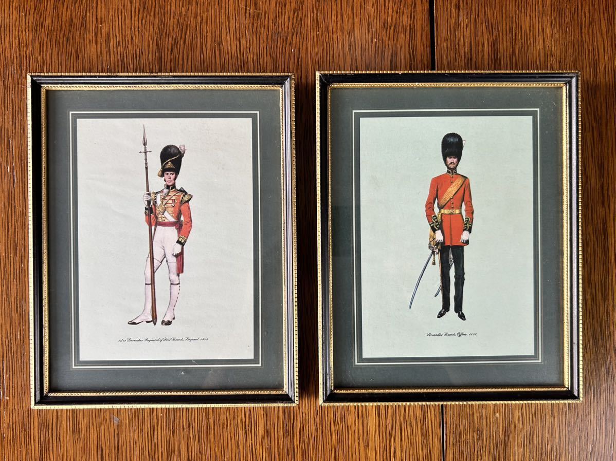 - 【国内発送660】イギリスアンティーク絵画 英国 ロンドン コマンダー ソルジャー ゴールドxブラック木製フレーム入り プリント画 2個