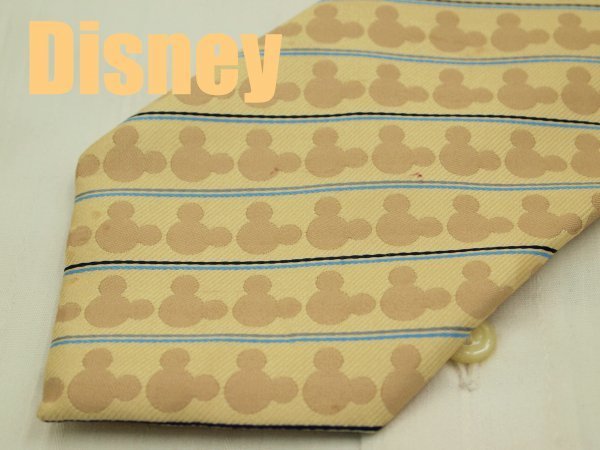- 【ディズニー ミッキー】OA 605 ディズニー Disney ウォルトディズニー110アニバーサリーネクタイ ベージュ系 ストライプ柄 ジャガード