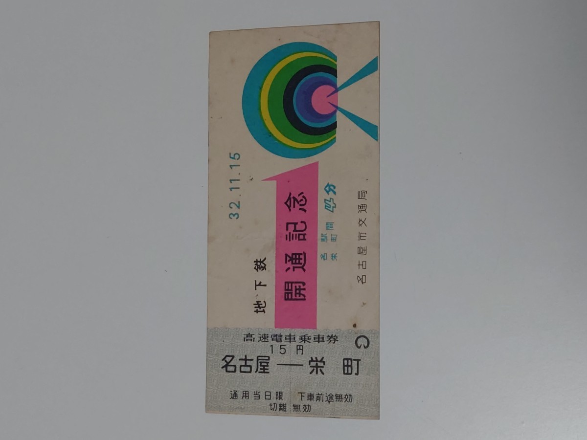 - 地下鉄開通 名古屋―栄町 開通記念 乗車券 昭和32年11月15日 名古屋市交通局 レトロ
