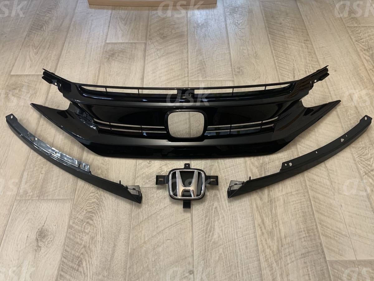 > ★新品 CIVIC シビック 2017-19用 フロントグリル + エクステンション左右セット + エンブレム ベース + エンブレム ホンダ 純正部品