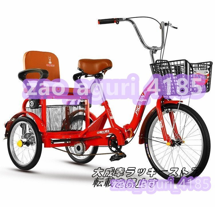 - 実用品!前輪20インチ・後輪16インチ 大容量 後カゴ付 大人用 三輪自転車 収納便利 高齢者用 高さ調節可能 組立品 初心者の自転車 104
