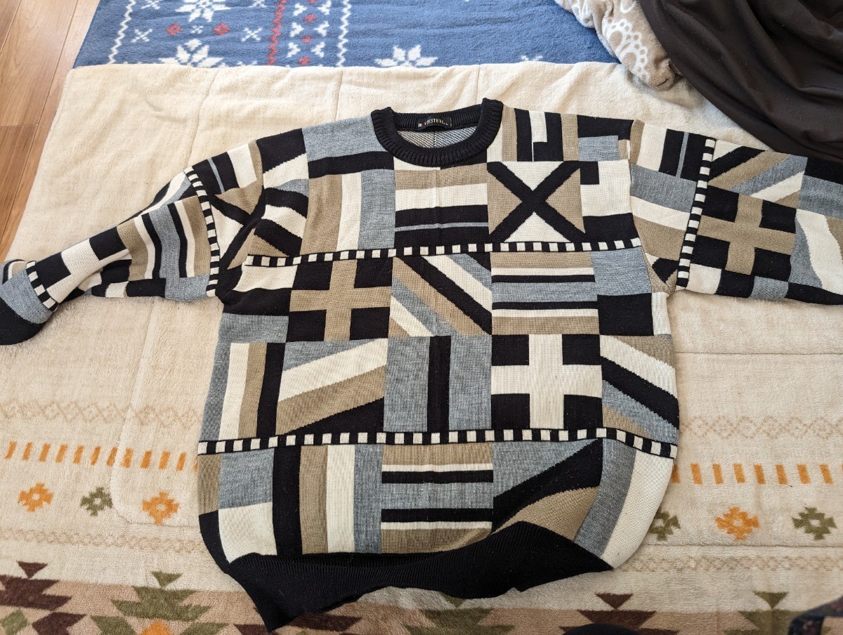 - レトロ男性用セーターL サイズ★ ニット 長袖 グレー★中古日本製viesteni