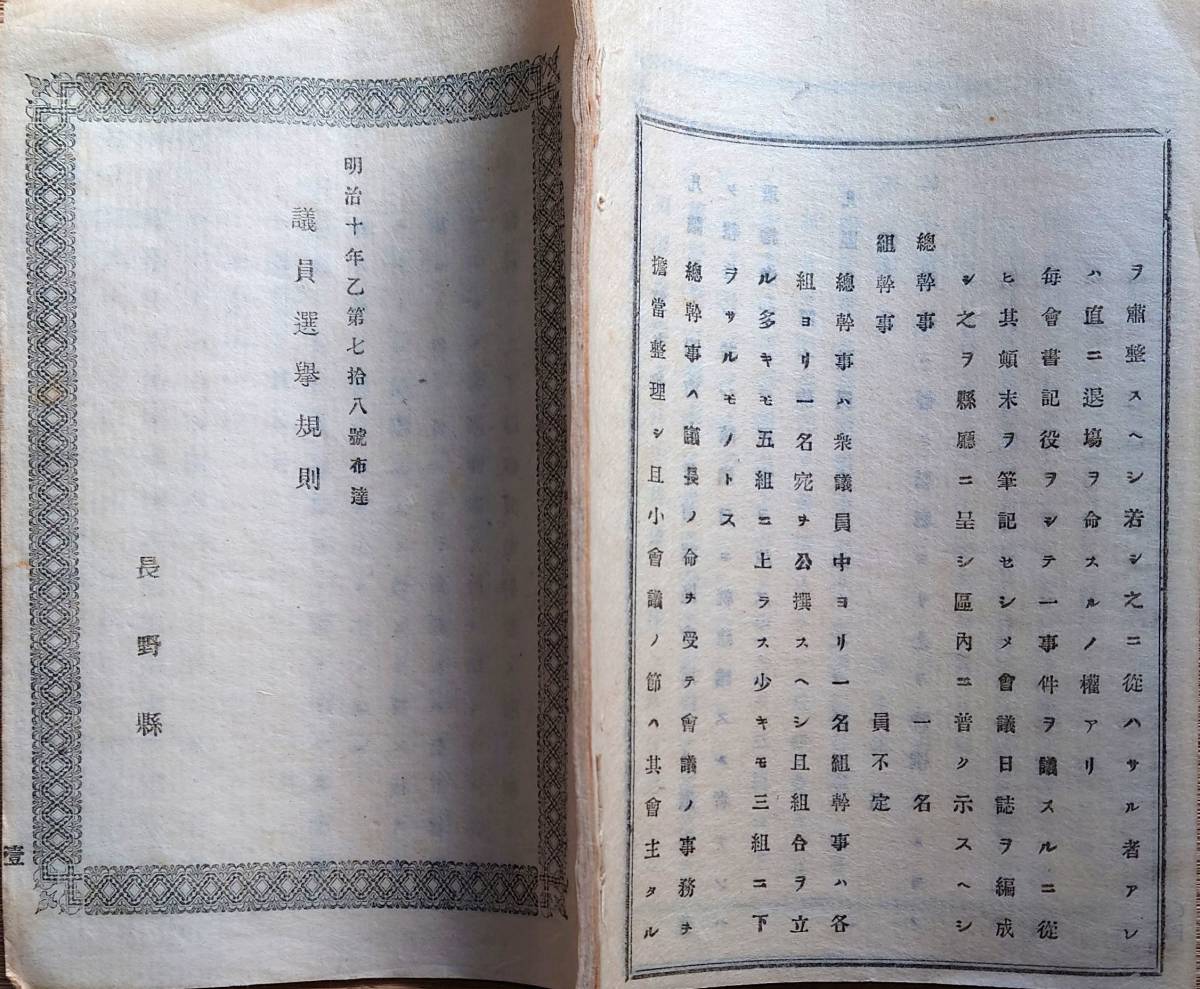 - f24012603〇明治布告布達 議員選挙規則 区会要領 長野県 明治10年〇和本古書古文書