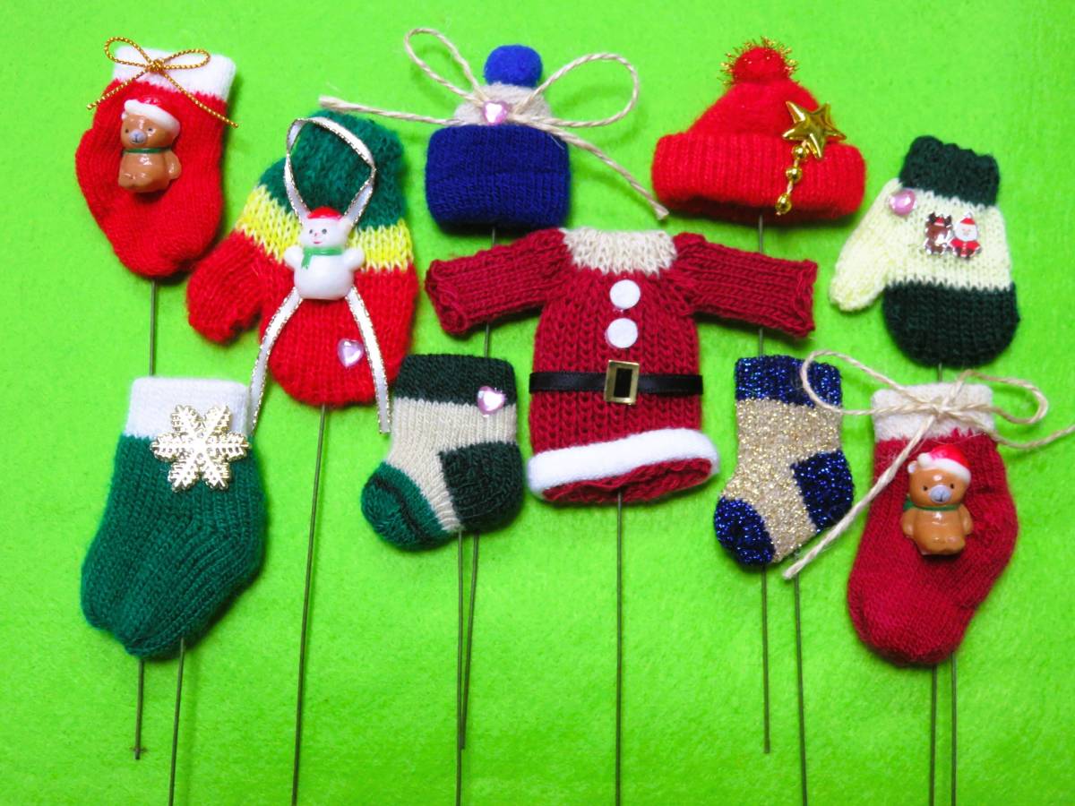- 【☆X'masミニニットピック☆10本☆】P3 靴下 手袋 帽子 セーター サンタ スノーマン ベアー スター ラインハート あったかニット ■SALE■