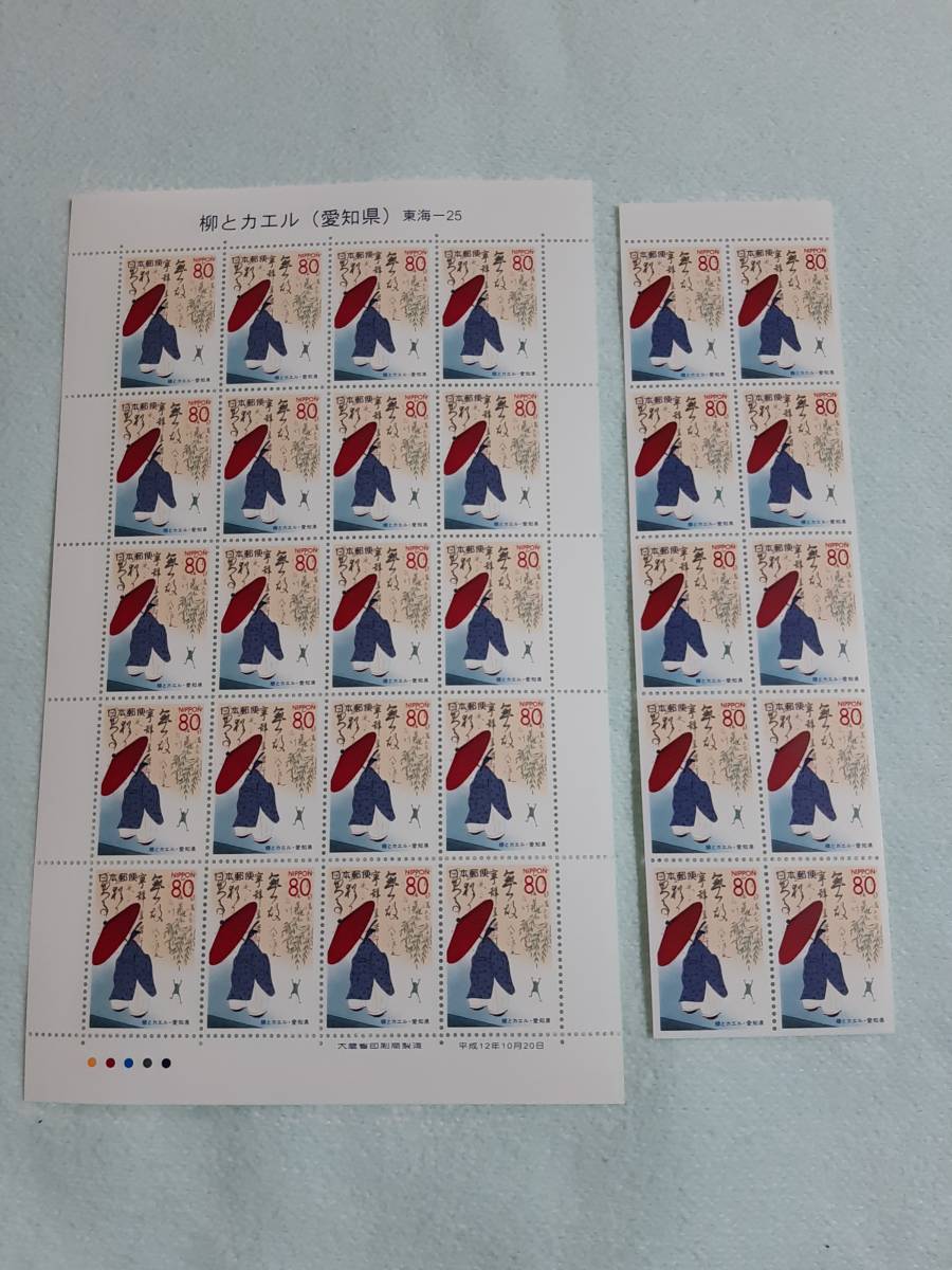 ふるさと切手 柳とカエル(愛知県)東海-25 H12 切手シート1枚と10枚シート