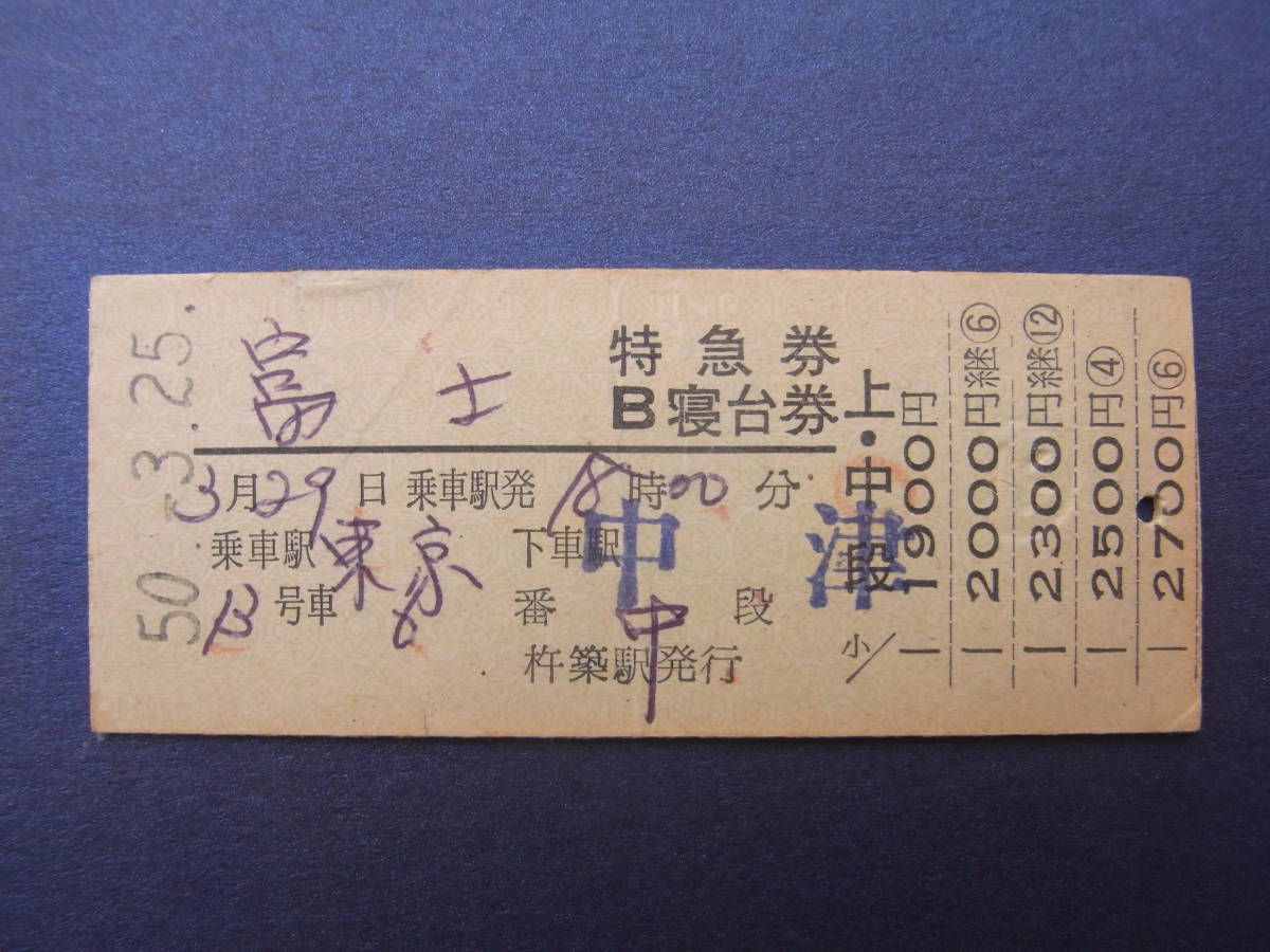 - 特急 「富士」特急券・B寝台券「東京→中津」50.3.25 杵築駅発行