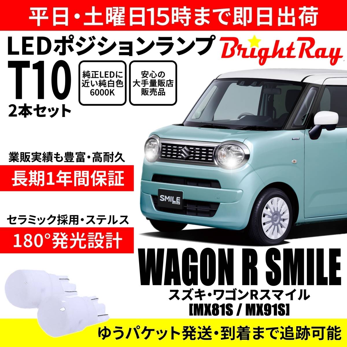 - 送料無料 1年保証 スズキ ワゴンRスマイル MX81S MX91S BrightRay T10 LEDバルブ ポジションランプ 車幅灯 車検対応 2本セット ホワイト