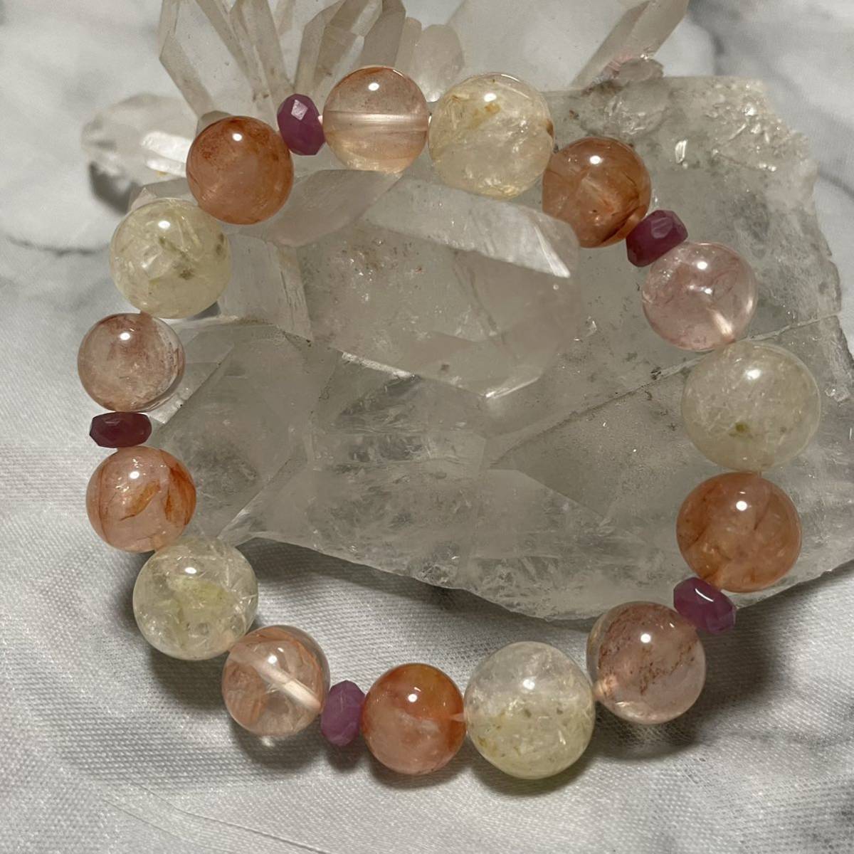 - BL2. 天然石 ブレスレット セリサイトインクォーツ ライモナイト ルビー オリジナル