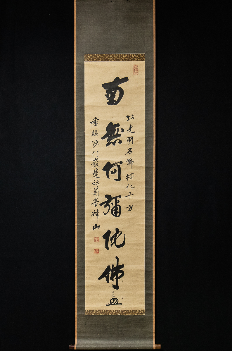 - 1530【真作】 蘭誉 南無阿弥陀仏 名号幅 巌蓮社蘭誉 麟山