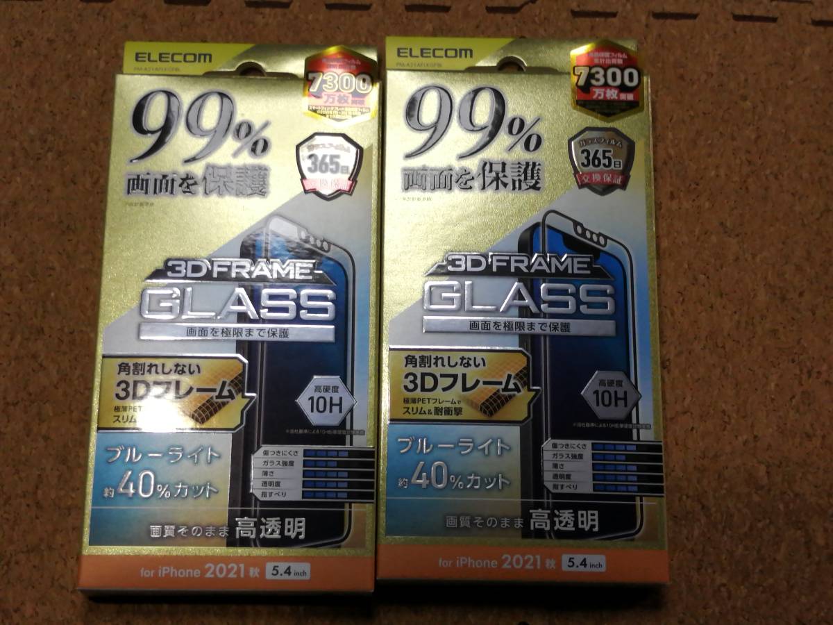 - 【2枚】エレコム iPhone 13 mini ガラスフィルム カバー率99% フレーム付き ブルーライトカット PM-A21AFLKGFBL 4549550226455