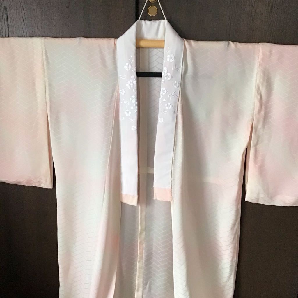 > 長襦袢♪小柄な方へ♪着用5時間♪裄63♪正絹♪誂え♪豪華刺繍半襟♪単♪高級感♪しつけ糸付