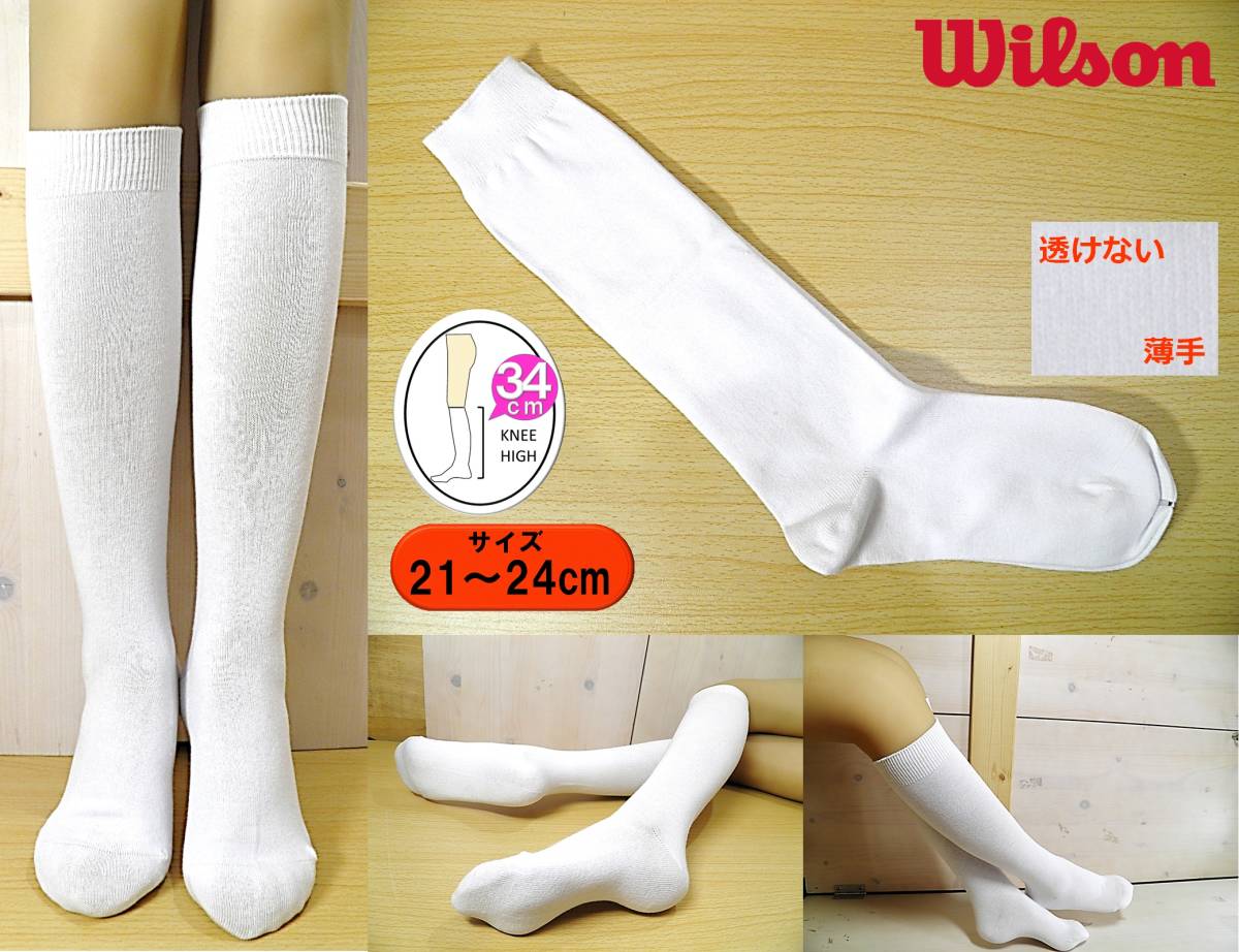 - 【レッグウェア★未使用品】イモト製◆Wilson◆なめらか 平編み 白 ハイソックス◆34cm丈◆21-24cm◆すけない薄手◆スポーツ◆スクール◆