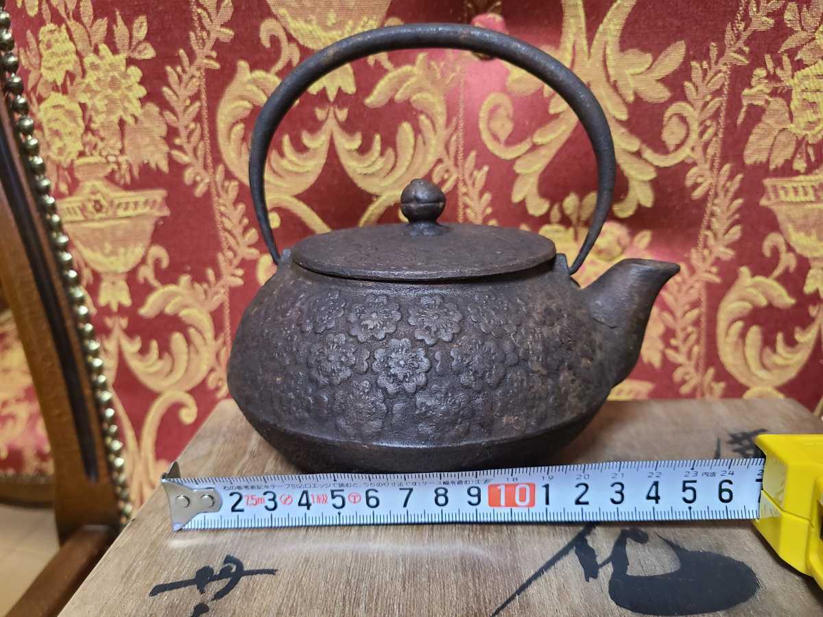 - 南部鉄瓶、古い、 鉄瓶 、急須、 花柄です、昔は手火鉢に乗せて湯を沸かしてました全体に元々茶色です。