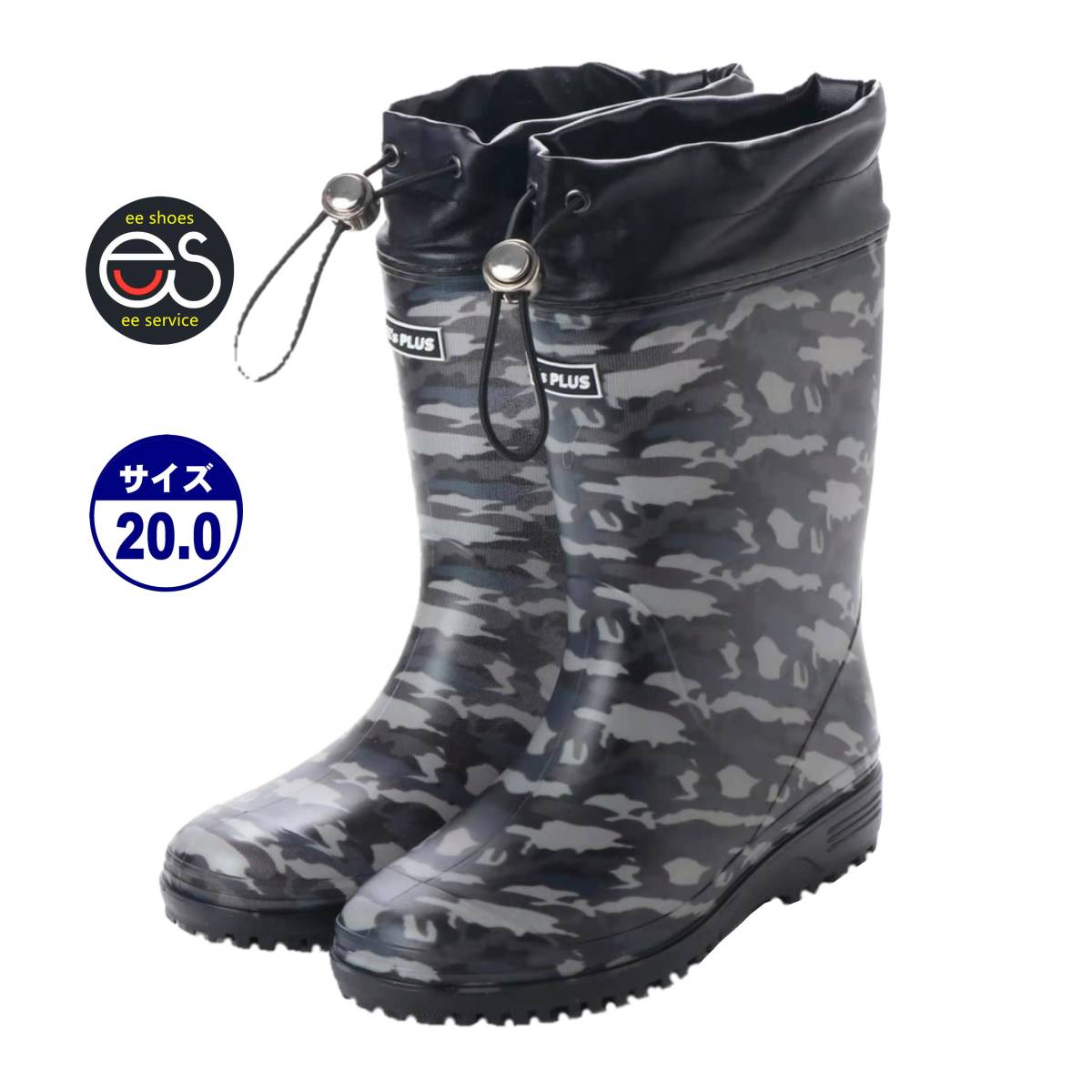 - ★新品★【18007-gry-200】キッズレインブーツ 巾着付き 防滑底 マット調 通学用 男女兼用