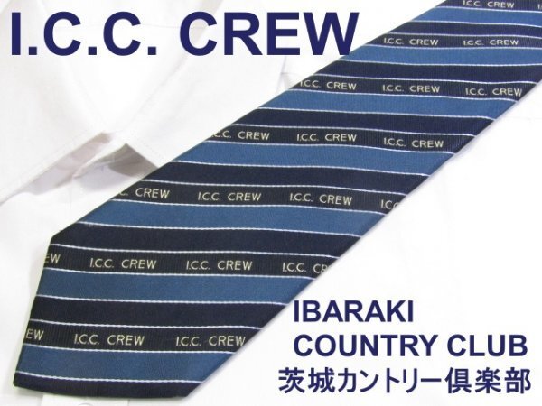 - 【ご当地 ゴルフ】C 729 茨木カントリー倶楽部 ネクタイ I.C.C. CREW IBARAKI COUNTRY CLUB 紺色系 レジメンタルストライプジャガード
