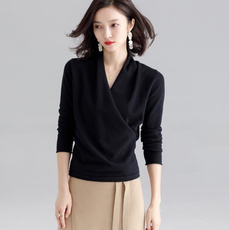 - ブラウス ニット カシュクール トップス レディース Vネック長袖 妊婦 授乳服 通勤服 BQ371
