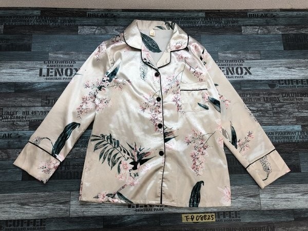 - SHAGADELIC レディース ポリエステル 花柄 光沢 パジャマ上 アイボリー緑ピンク