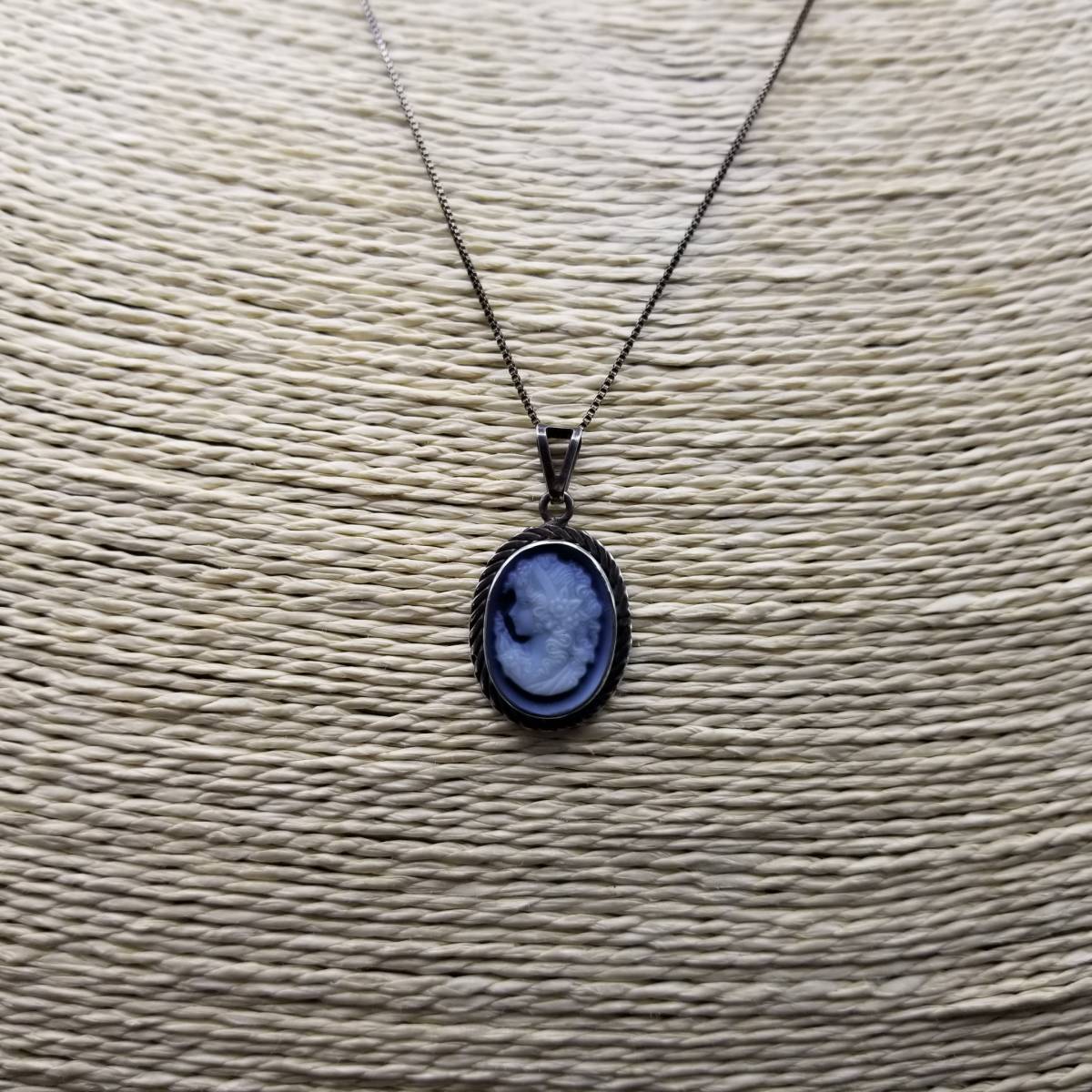 > ヴィクトリアン 女性像 カメオ オーバル 925 シルバー ヴィンテージ ネックレス ペンダント 銀 クラシカル ケーブルリム Classic Y13-S