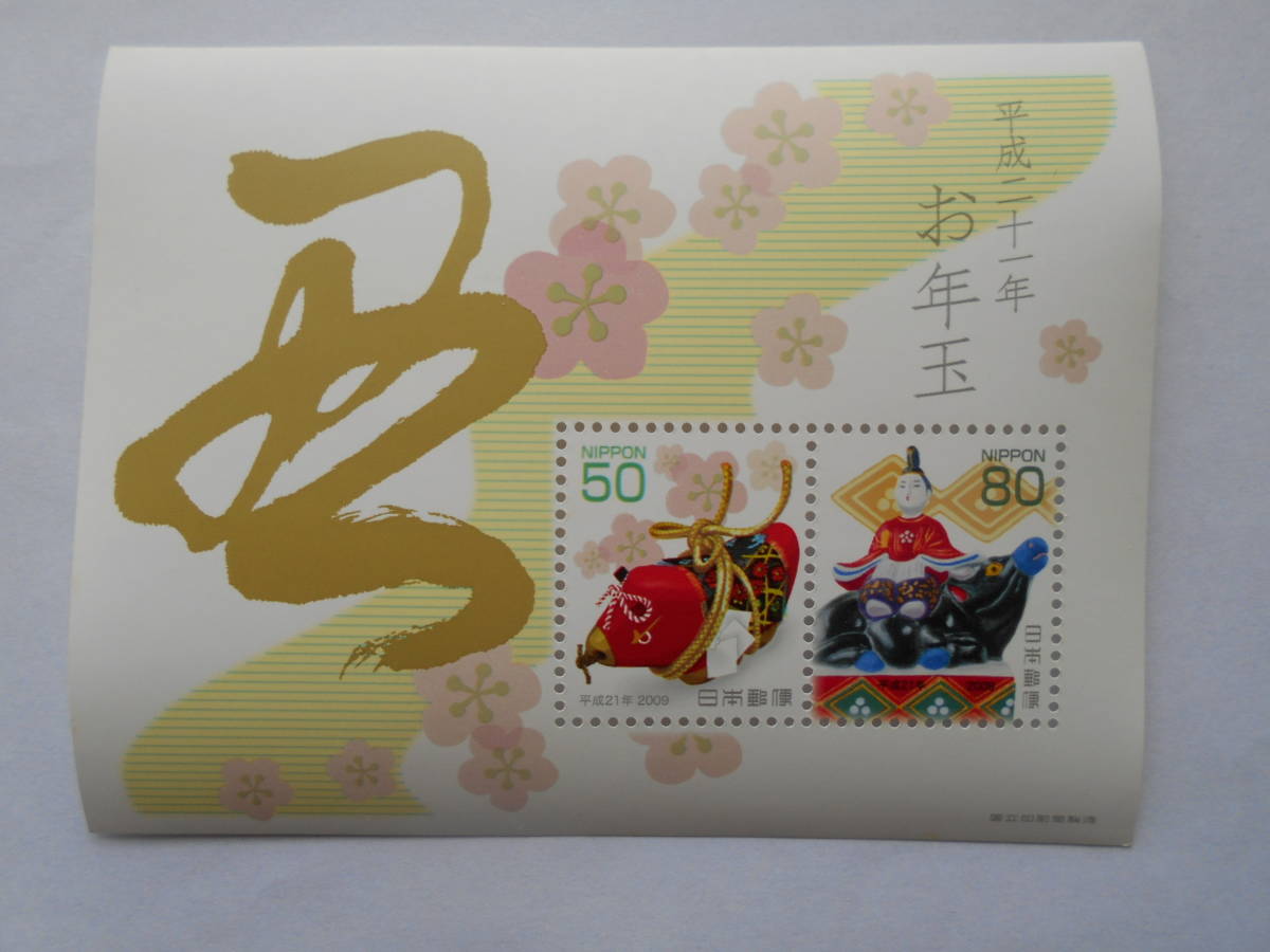 - 2009年用お年玉切手 うし 未使用50円80円切手 小型シート(909シ)