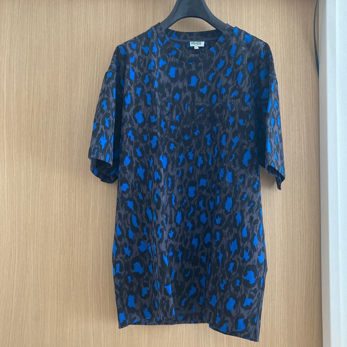 > KENZO パリ ジャパン Tシャツ ブラック 黒 半袖 メンズXL ヒョウ柄 ブルー コットン100% 厚手レディース シャツワンピース パジャマ