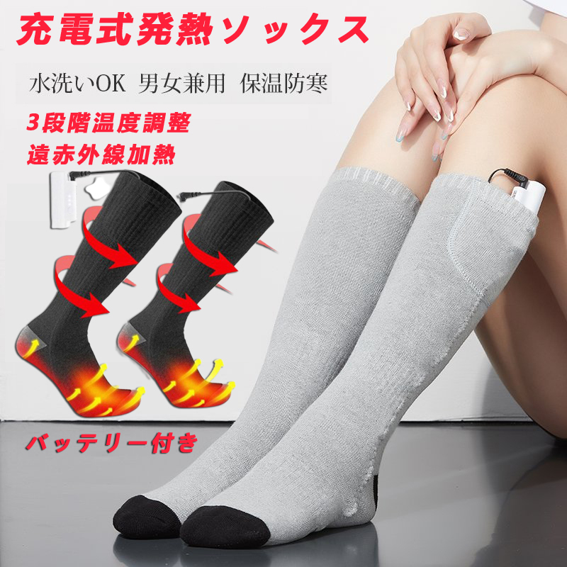 - 電熱ソックス ヒーターソックス 電熱靴下 ヒーター靴下 3段階温度調整 防寒グッズ 充電式 アウトドア 水洗い可 厚手 冬用 バッテリー付き