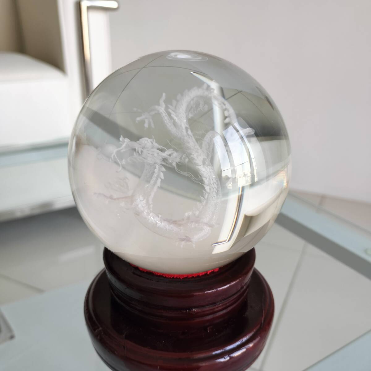 - レーザーで彫られた龍の丸珠[tKEL]10cm 特大サイズ☆当店人気商品