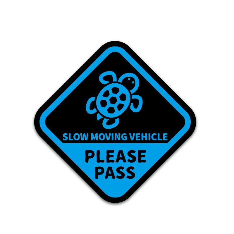 - ゆっくりカメさんステッカー 8cm ブルーB PASS黒 低速走行車両 ドライブ