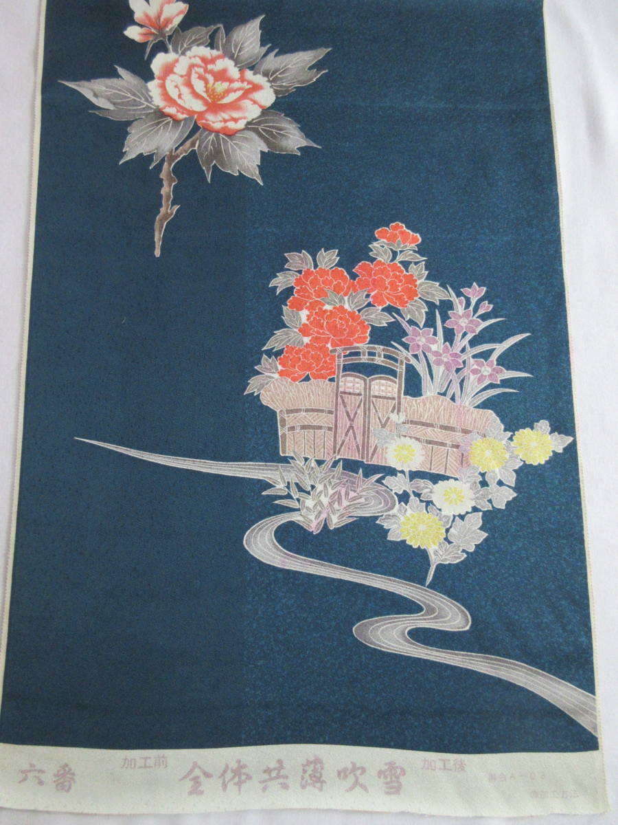 - ②正絹 牡丹柄 全体共薄吹雪 タスペストリー・テーブルセンター・バック ・パッチワークや小物作りに如何! 約50×37cm